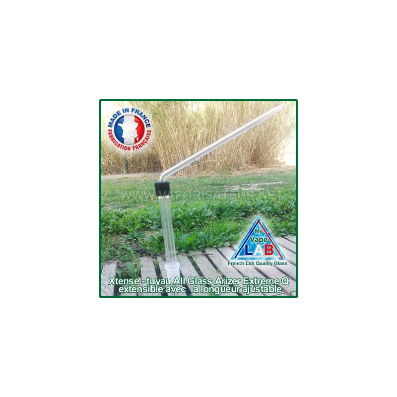 Le besoin d'un tuyau 100% verre a été donc très présent depuis le début de la commercialisation des vapos de salon Arizer et le fabricant n'a jamais vraiment assuré de ce côté-là. Nos amis de MyVapeLAB sont là pour corriger le tir encore une fois en nous concoctant un jolie connecteur d'inhalation tout en verre de laboratoire borosilicaté qui remplace la partie inhalation en direct d'origine et vous affranchit de la nécessité à acheminer la vapeur par une grande partie du conduit dont les parois sont en PVC ou en silicone qui jouent forcement sur le gout final obtenu. De plus, le tuyau Glass Whip MyVapeLAB est comme déjà dit ajustable avec une tolérance de 10 cm supplémentaires en hauteur afin d'adapter votre utilisation du tuyau d'inhalation d'Extreme Q ou V Tower à toutes les situations et positions.