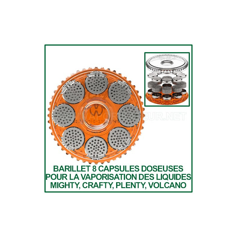 Si vous êtes heureux propriétaire d'un vaporisateur portable Mighty et Crafty ou d'un vaporizer de salon Volcano ou Plenty (dotés d'un réducteur de chambre de remplissage pour ces deux vous allez pouvoir profiter de ces capsules doseuses qui viennent dans un barillet de transport 8 emplacements permettant une vaporisation plus simple des extraits huileux ou autres concentrés végétaux plus ou moins liquides et dont la consistance diffère de la matière végétale simple).