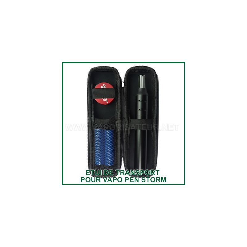 Cet étui de transport a été fabriqué par le fabricant, conçu et dessiné sur mesure pour y ranger le vapo pen Storm avec ses principaux accessoires. Il s'agit d'une trousse de transport de taille parfaite idéale pour partir en vadrouille stormique sans se soucier d'une casse éventuelle. Un must pour les grands nomades pour partir esprit tranquille.