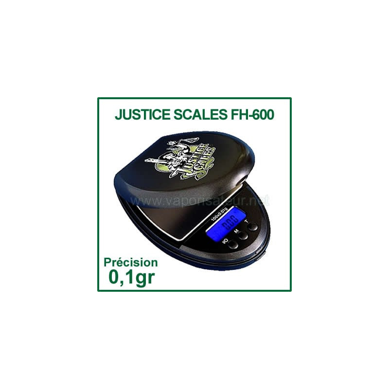 Justice Scales FH-600 est une petite balance de précision de poche qui malgré ses petites dimensions (10cm x 7,6cm x 1,9cm) se présente comme une balance de précision de très grande capacité (peut peser une quantité des herbes médicinales ou du tabac allant jusqu'au 600gr de poids). Son écran rétroéclairé ajoute une touche high-tech - le tout à un prix eco !
