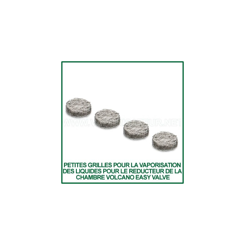 Attention ces petites grilles pour liquides aux mensurations suivantes: 15mm x 5mm ne sont pas compatibles avec les capsules doseuses (13mm x 6mm) et sont à utiliser directement dans le réducteur de la chambre de remplissage Volcano Easy Valve. Pour vos capsules doseuses nous vous recommandons le kit de 4 grilles liquides pour cartouches à pré-remplir