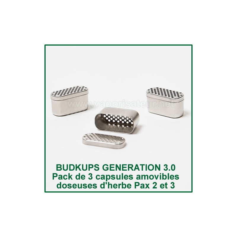 Vous étiez nombreux à nous les demander et elles sont désormais disponibles en toute nouvelle version 3.0 - les BudKups - capsules doseuses d'herbe pour vaporisateur portable Pax 2 ou Pax 3. Pour ceux qui ne connaissent pas cet incroyable accessoire il s'agit des capsules doseuses conçues sur mesure en forme et design correspondant à la cuve de chauffe du vapo Pax (en deuxième et troisième version qui ont les cuves parfaitement identiques et donc par la nature des choses accessoires 100% compatibles).