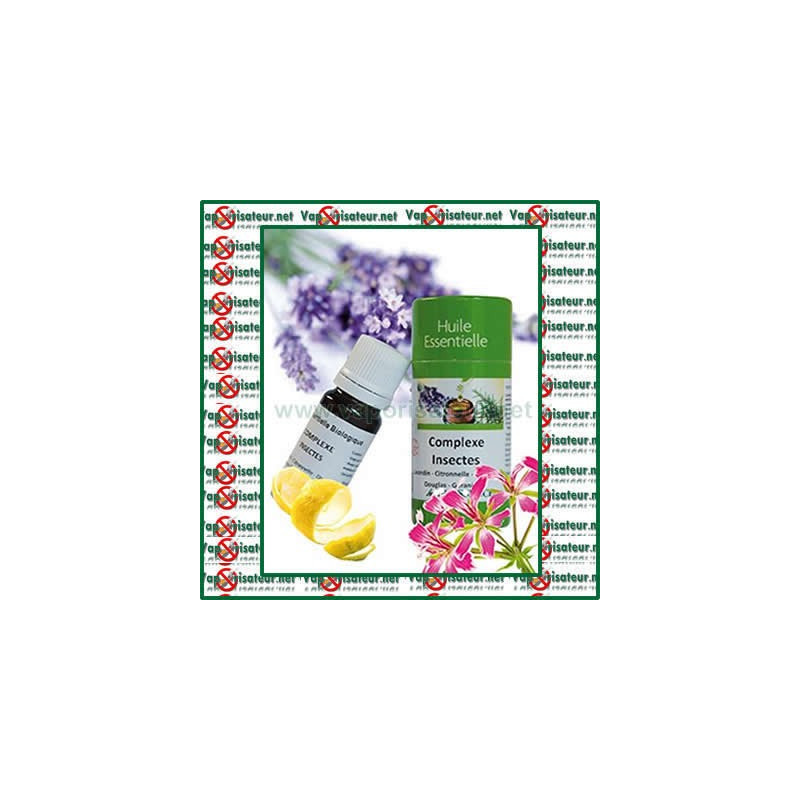 Les huiles essentielles biologiques savamment sélectionnées et réunies peur leur action répulsive collective particulièrement efficace n'ont pas pour le but ultime de tuer les insectes. Ces derniers ne supportent tout simplement pas les arômes et la composition chimique de l'odorat que les huiles essentielles biologiques mélangées dans le Complexe Insectes et vaporisées dans l'air par votre meilleur vaporisateur-diffuseur libèrent lors de la réaction chimique de sublimation qui survient lors de la chauffe et de l'envoi du flux d'air chaud ou d'air froid par la soufflerie et la ventilation du vaporizer à travers du coton humidifié avec quelques gouttes de ce complexe HE bio plus qu'étonnant.
